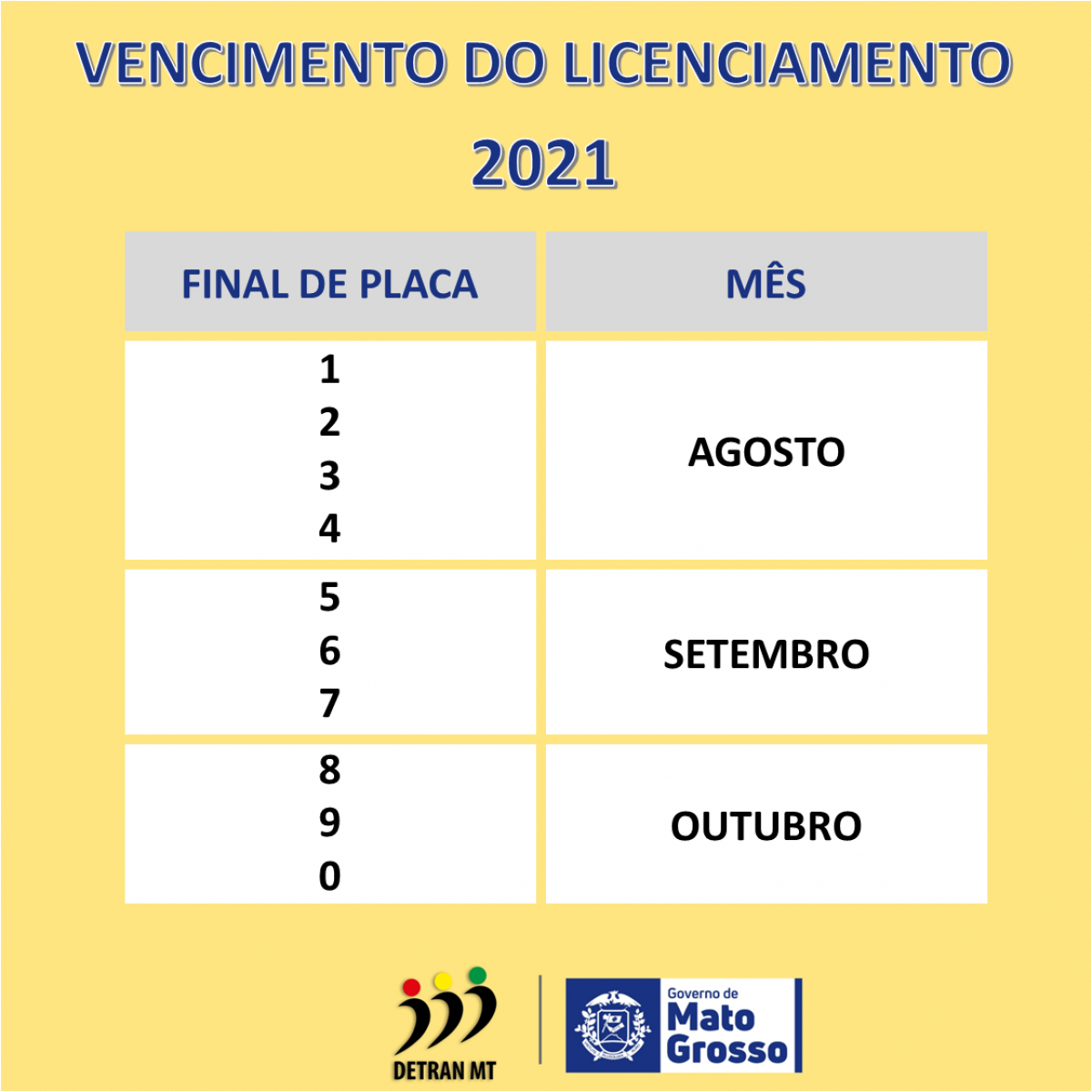 O prazo do calendário de vencimento do Licenciamento já havia sido prorrogado pelo Detran-MT, no início deste ano, em razão dos reflexos financeiros causados pela pandemia da covid-19 em Mato Grosso.