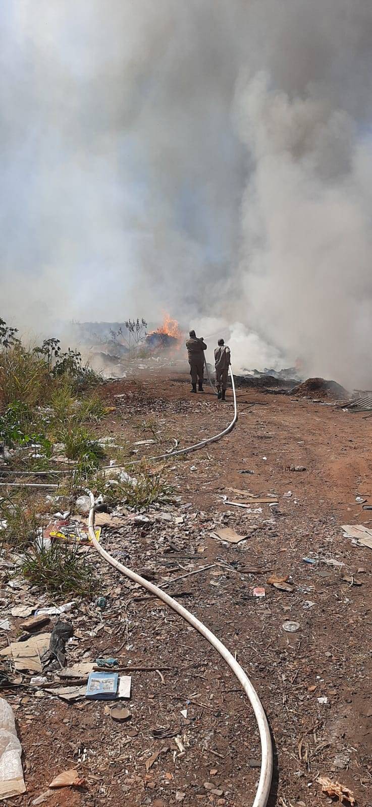 Um incêndio de grandes proporções mobilizou homens da Base do Corpo de Bombeiros de Santo Antônio de Leverger, na manhã desta quarta-feira (21), numa área da prefeitura de Santo Antônio de Leverger, onde antigamente funcionava um depósito para transbordo de lixo da cidade de Leverger, as chamas e a fumaça assustaram moradores que residem próximo a área localizada as margens da estrada que dá acesso a comunidade de Varginha.