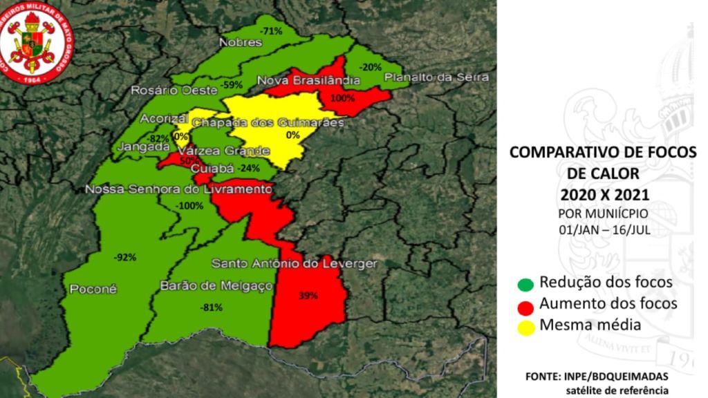 Já nos municípios que integram o Pantanal Mato-grossense, a redução chega a 80%, sendo que em Poconé, o índice é de -92%. Nestes locais, afirma Marcondes, os incêndios apresentaram uma retração por conta da redução da biomassa, já que grande parte foi consumida pelo fogo no ano passado, quando 2,1 milhões de hectares foram destruídos pelas chamas.