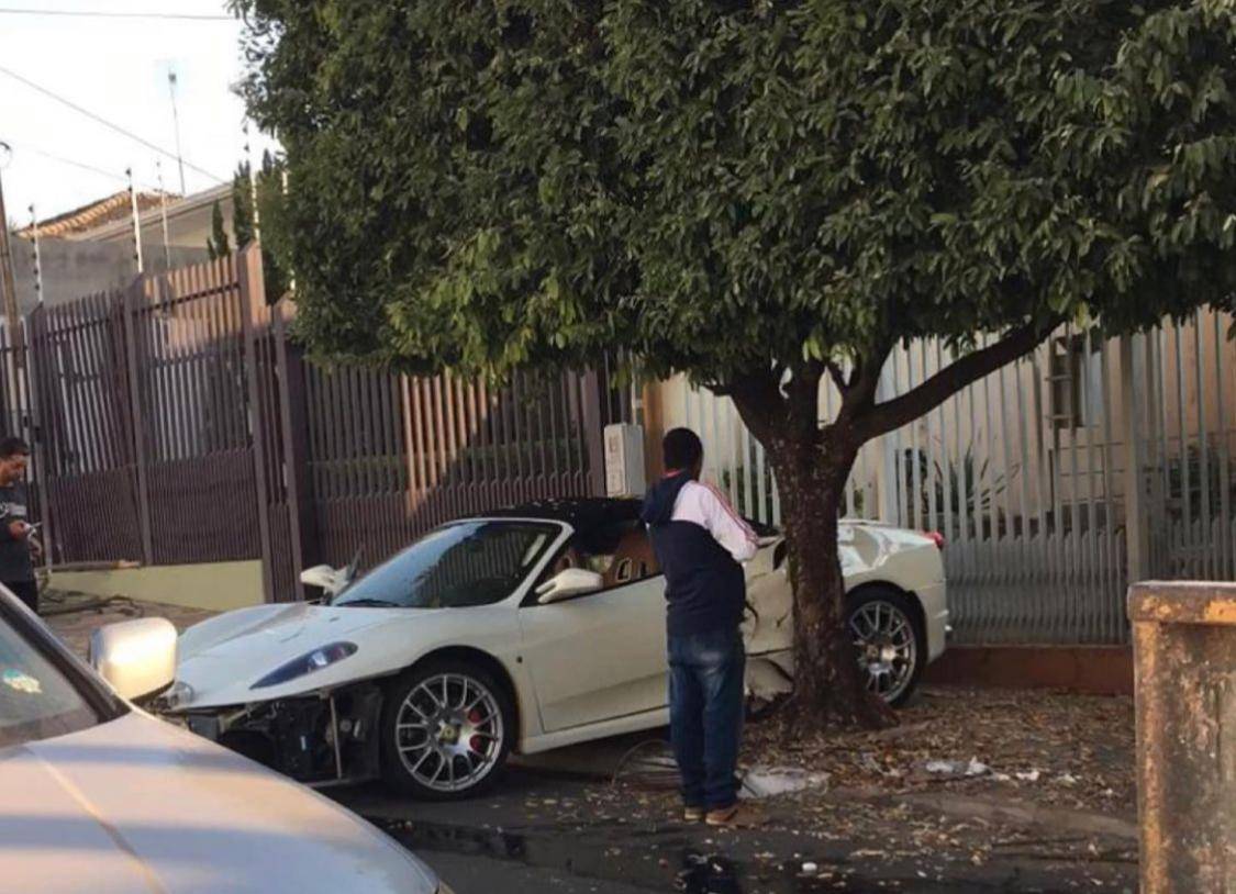 Imagens divulgadas pela página @perrenguematogrosso nesta sexta-feira (13) mostram um acidente envolvendo uma Ferrari branca registrado no cruzamento da Avenida Brasília com a Rua Montevideo no bairro Jardim das Américas, em Cuiabá.