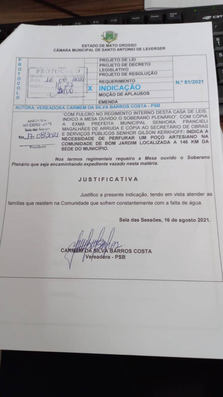 Duas proposituras (indicação parlamentar), da vereadora Profª Carmem (PSB), apresentadas na sessão ordinária da Câmara Municipal de Santo Antônio de Leverger no último dia 16 de agosto, se atendidas pela prefeitura do município, podem melhorar a qualidade de vida de moradores da região de Bom Jardim, comunidade serrana, distante 146 km da sede do município de Leverger.