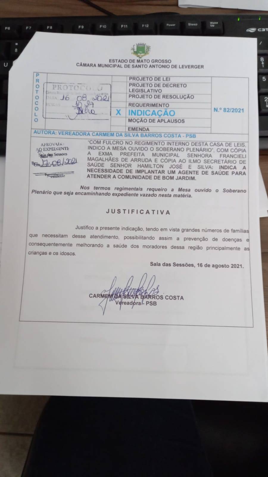 Outra indicação da vereadora, solicita a prefeitura a contratação de um Agente de Saúde para atender as famílias de Bom Jardim.