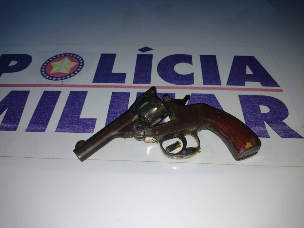 Ao chegar no local, os policiais realizaram rondas e numa via próxima a Igreja Assembleia de Deus, abordaram dois indivíduos que estavam numa motocicleta, e durante a busca pessoal, foi encontrado na cintura do suspeito, V.A.H (15 anos), um revólver, calibre 22, marca Recky, com 02 (duas, munições do mesmo calibre, intactas. A moto que estavam os suspeitos foi checada, mas não foi encontrada restrições para o veículo, que foi entregue para os familiares do menor.