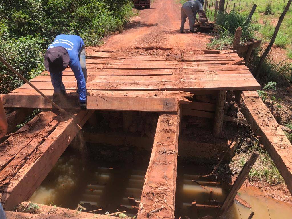 O prefeito disse que a ponte que sobrepõe o córrego tem uma extensão de 6 metros de comprimento por quatro metros de largura, que estava com algumas longarinas danificadas e o assoalho comprometido com muitas pranchas quebradas.