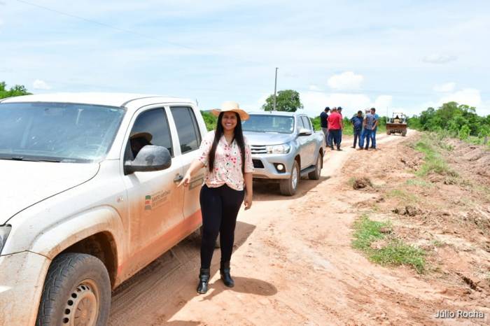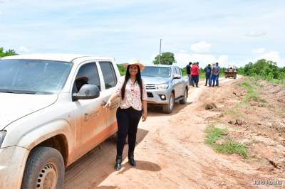 Acompanhada também dos vereadores , Miguel dos Santos (PTB), líder do Executivo na Câmara Municipal e do progressista, Duda Belmiro (PP), além de secretários municipais, Francieli vistoriou obras e serviços na comunidade de Cambará (distante 115 km da sede), onde a prefeitura realiza ações de restauração de estradas vicinais que atendem os moradores.