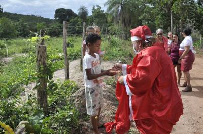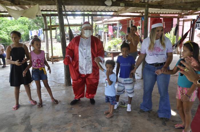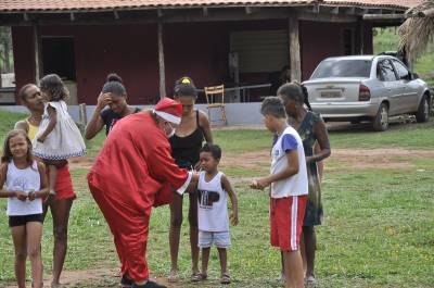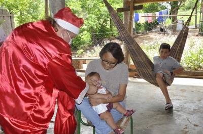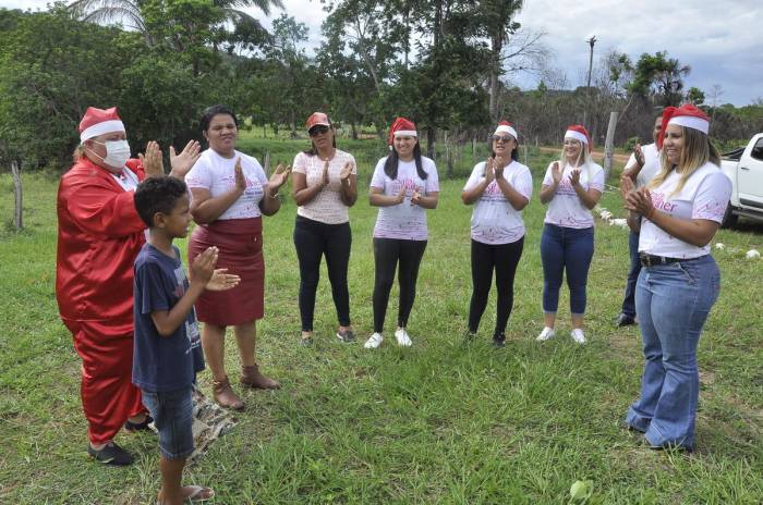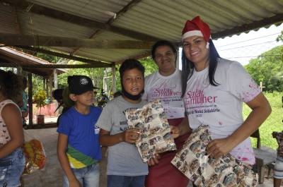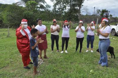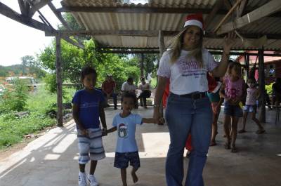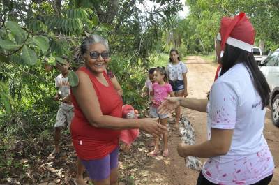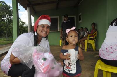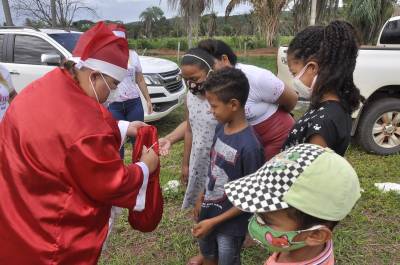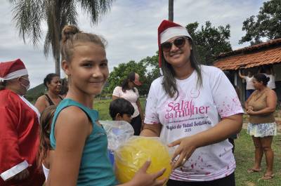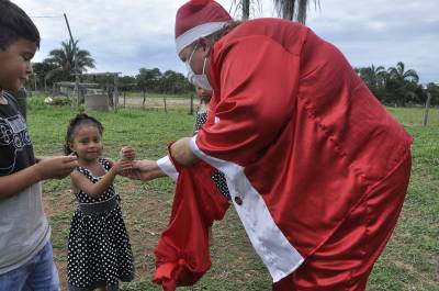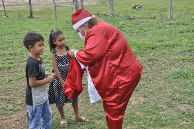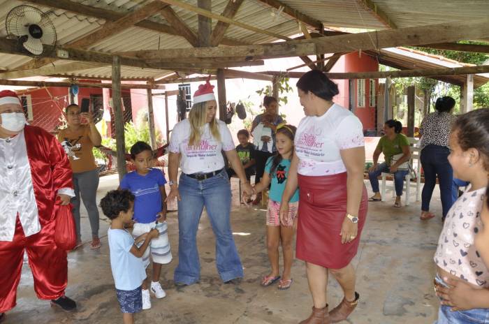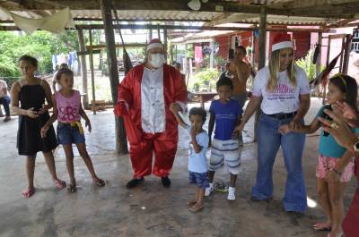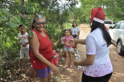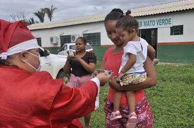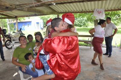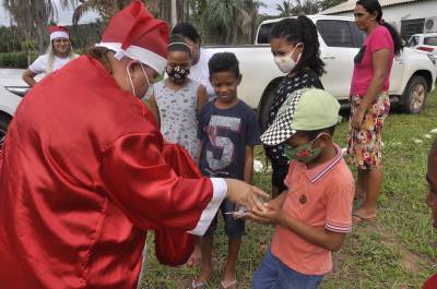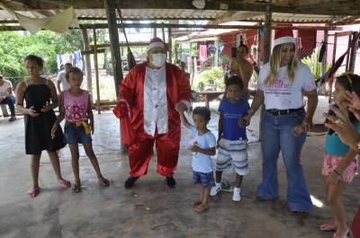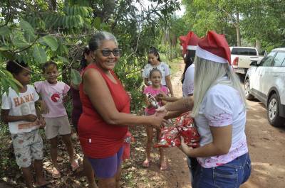 A caravana “Magia do Natal”, em mais uma ação da Sala da Mulher da Câmara Municipal de Santo Antônio de Leverger, esteve nesta quarta-feira (15), em comunidades circunvizinhas ao distrito de Mimoso, onde centenas de crianças recepcionaram a figura de Noel.