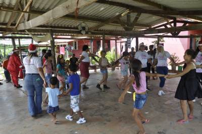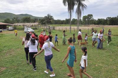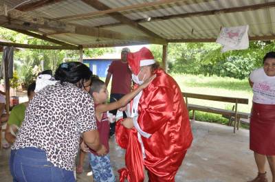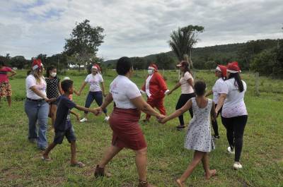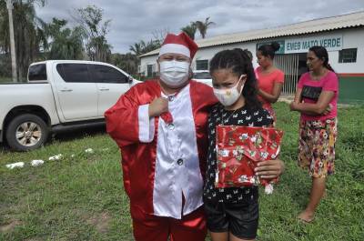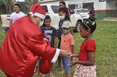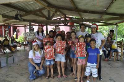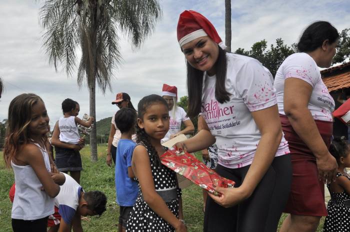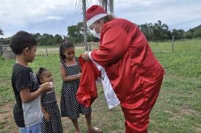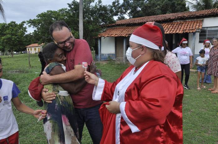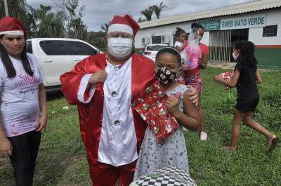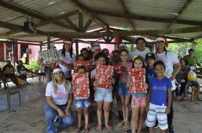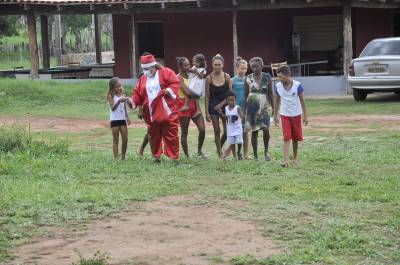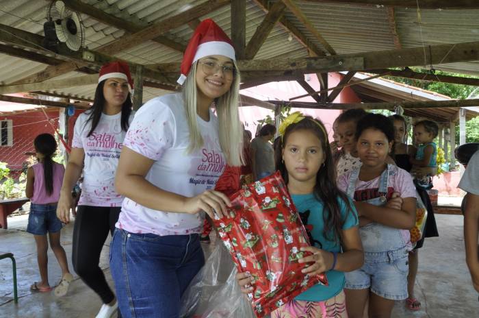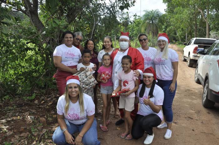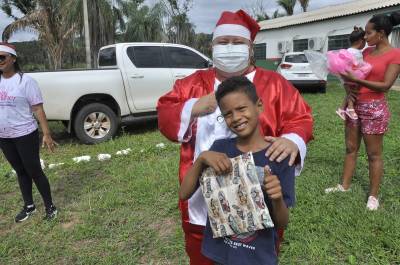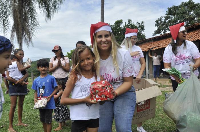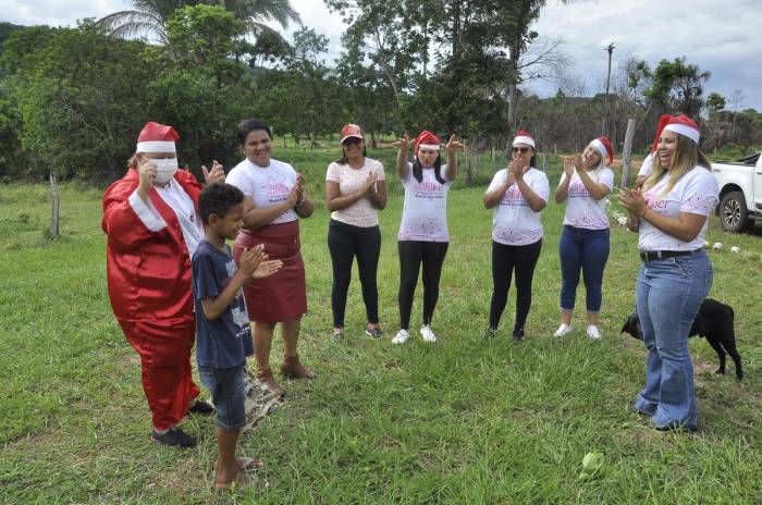 A caravana “Magia do Natal”, em mais uma ação da Sala da Mulher da Câmara Municipal de Santo Antônio de Leverger, esteve nesta quarta-feira (15), em comunidades circunvizinhas ao distrito de Mimoso, onde centenas de crianças recepcionaram a figura de Noel.