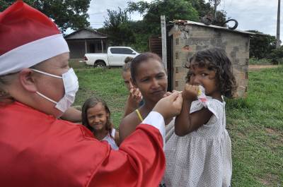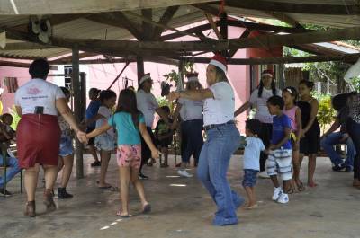 A 200 km da sede do município, no extremo sul de Santo Antônio, em pleno Pantanal, a comitiva chegou no meio da tarde a comunidade de Baia São João, onde entregaram presentes.