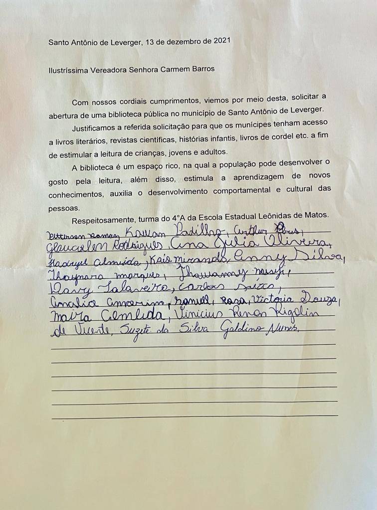 No documento votado e aprovado em plenário por unanimidade entre os demais vereadores, Carmem Barros cita, “ler é um hábito incrível, muito benéfico para alunos e sua aprendizagem, Cultivar um hábito de leitura desde a infância é positivo, e pode ajudar muitos em seus estudos”, diz trecho da justificativa da indicação.