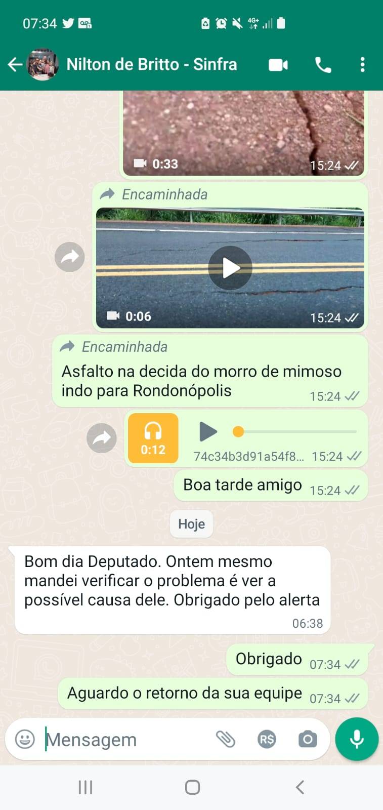 A Sinfra-MT, enviou no final da tarde desta quarta-feira (12), um comunicado ao presidente da Câmara Municipal de Santo Antônio de Leverger, vereador Rominho (PV), informando sobre as ações que foram tomadas sobre uma anomalia que surgiu no pavimento asfáltico da rodovia “Estrada Parque” que está em construção e vai ligar o distrito de Mimoso a São Lourenço de Fátima, município de Juscimeira-MT.