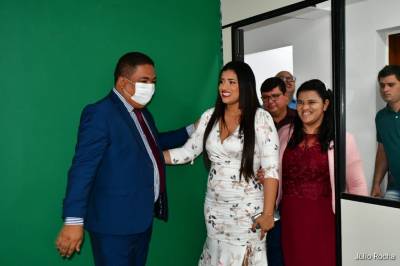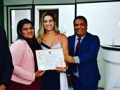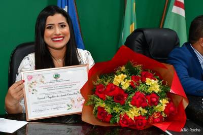 Durante o evento, a prefeita Francieli também foi homenageada, recebendo do seu esposo, o secretário de governo, Izaias Júnior, um buquê de flores.