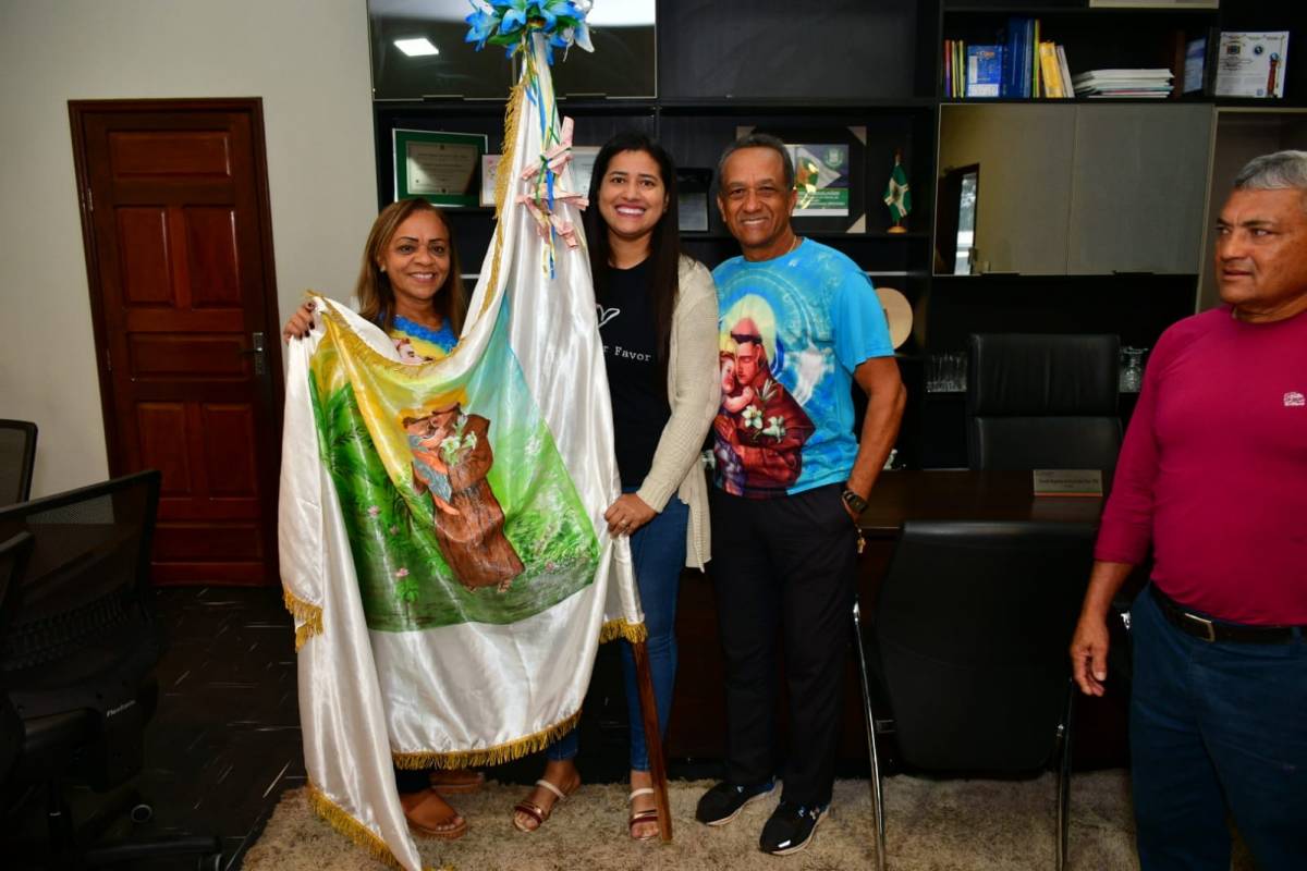 Dessa forma, seguindo os hábitos tradicionais do município e como devota do santo padroeiro de Leverger, a prefeita, Francieli Magalhães Vieira Pires recebeu em seu gabinete, nesta quinta-feira (02), os festeiros com a bandeira de Santo Antônio, juntamente com os servidores da casa.