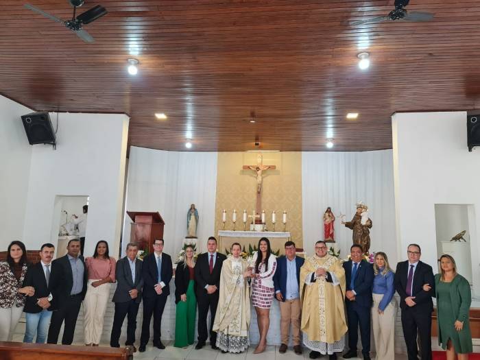 “Mais um dia de Festividades, e hoje participando da tradicional missa de Santo Antônio na Igreja Matriz, juntamente com as autoridades do nosso município, nossos Vereadores. Recebemos a benção e rogamos a Deus por discernimento e sabedoria a frente do executivo e legislativo, prezando sempre o benefício da nossa população”, escreveu a prefeita.