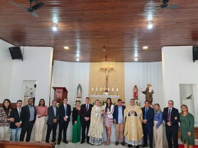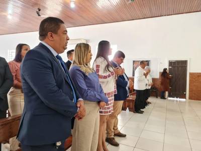 Em comemoração aos 122 anos de emancipação político-administrativa do município de Santo Antônio de Leverger-MT, a prefeita Francieli Magalhães (PTB), e o presidente da câmara municipal, Rômulo Queiroz (PV), acompanhado de colegas vereadores, secretários municipais e demais membros da sociedade civil santo-antoniense, participaram na manhã desta segunda-feira (13), de uma missa em Ação de Graças pelo aniversário do município.