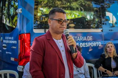 O secretário de Educação, Professor Júnior Oliveira, comemorou a entrega do novo veículo.