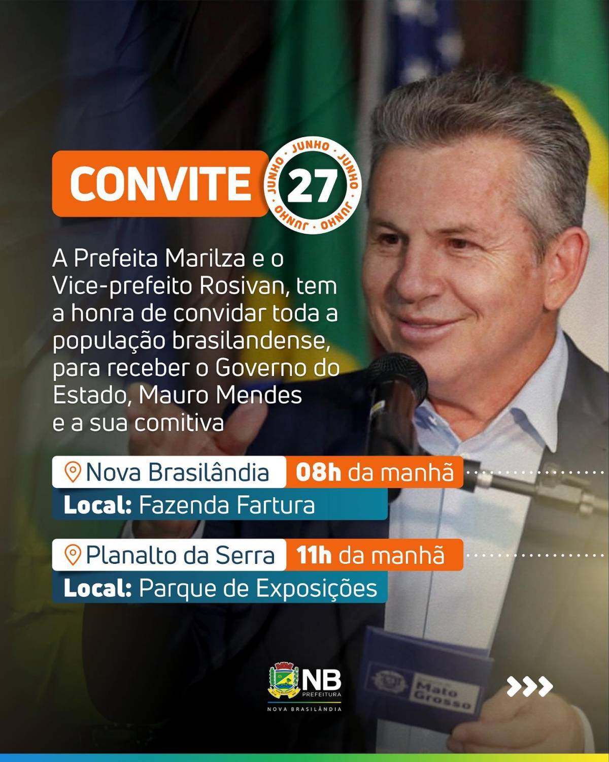 Em Planalto da Serra, a partir das 11h30 no parque de Exposições, o governador irá assina dois convênios para Nova Brasilândia: um para a a realização da Expobras, e outro para a celebração do 43º aniversário da cidade. No total, serão destinados R$ 410 mil para os eventos.