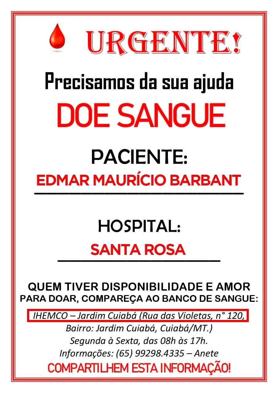 Ao doar, especifique que o sangue é destinado ao paciente Edmar Maurício Barbant, que está internado no Hospital Santa Rosa.