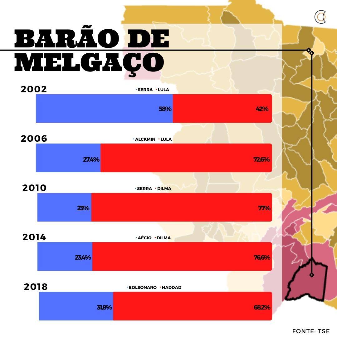 Mesmo sem Lula e Dilma, Barão de Melgaço continuou sendo um reduto petista nas eleições de 2018, marcado pela onda bolsonarista no Estado. O ex-prefeito de São Paulo, Fernando Haddad, venceu em apenas 19 cidades mato-grossenses, sendo que no município o político teve 2.618 votos (68,12%).
