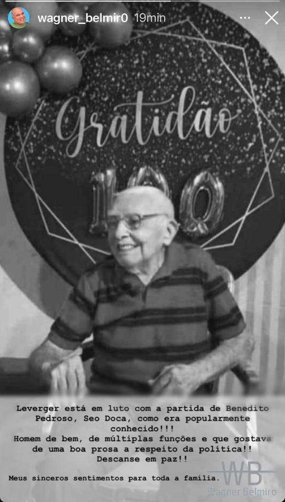 Outro que manifestou pesar foi o ex-presidente da câmara de Santo Antônio, Wagner Belmiro, filho do ex-prefeito, professor Edu.