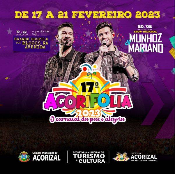 O Prefeito de Acorizal Diego Taques por meio da Secretaria de Turismo e Cultura sob comando de Dirceu Dino e todo o secretariado estão empenhados na missão de preparar a cidade para esta grande festa popular cancelado por dois anos devido a pandemia.