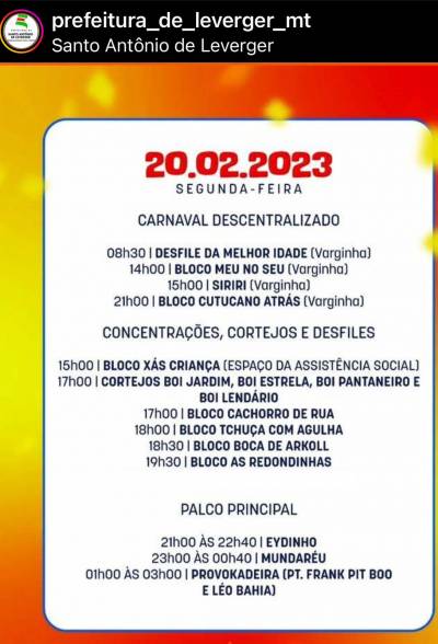 A alegria retornou a Leverger com a celebração do Carnaval. Estou muito feliz e a nossa cidade está de coração aberto para receber qualquer cidadão de Mato Grosso disposto a festejar", destaca a prefeita Francieli.