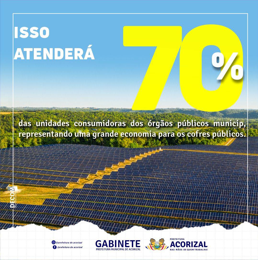 A inauguração da usina de energia solar de Acorizal é uma ótima notícia para a cidade e para o meio ambiente. Parabéns à prefeitura pelo compromisso com a sustentabilidade e com a economia de recursos públicos. Juntos podemos construir um futuro melhor para todos!