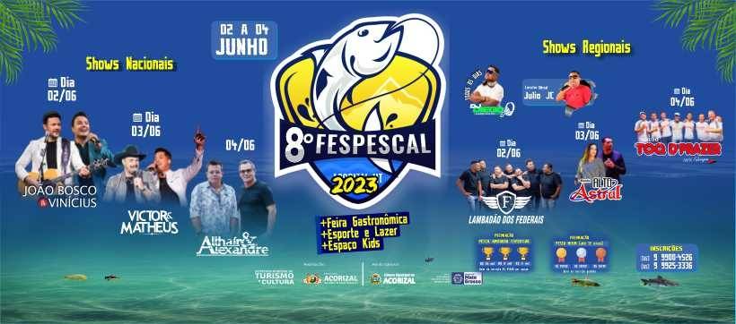 A Secretaria Municipal de Turismo e Cultura de Acorizal está com as inscrições abertas para o 8º FESPESCAL - Festival de Pesca de Acorizal, que será realizado nos dias 02, 03 e 04 de junho.