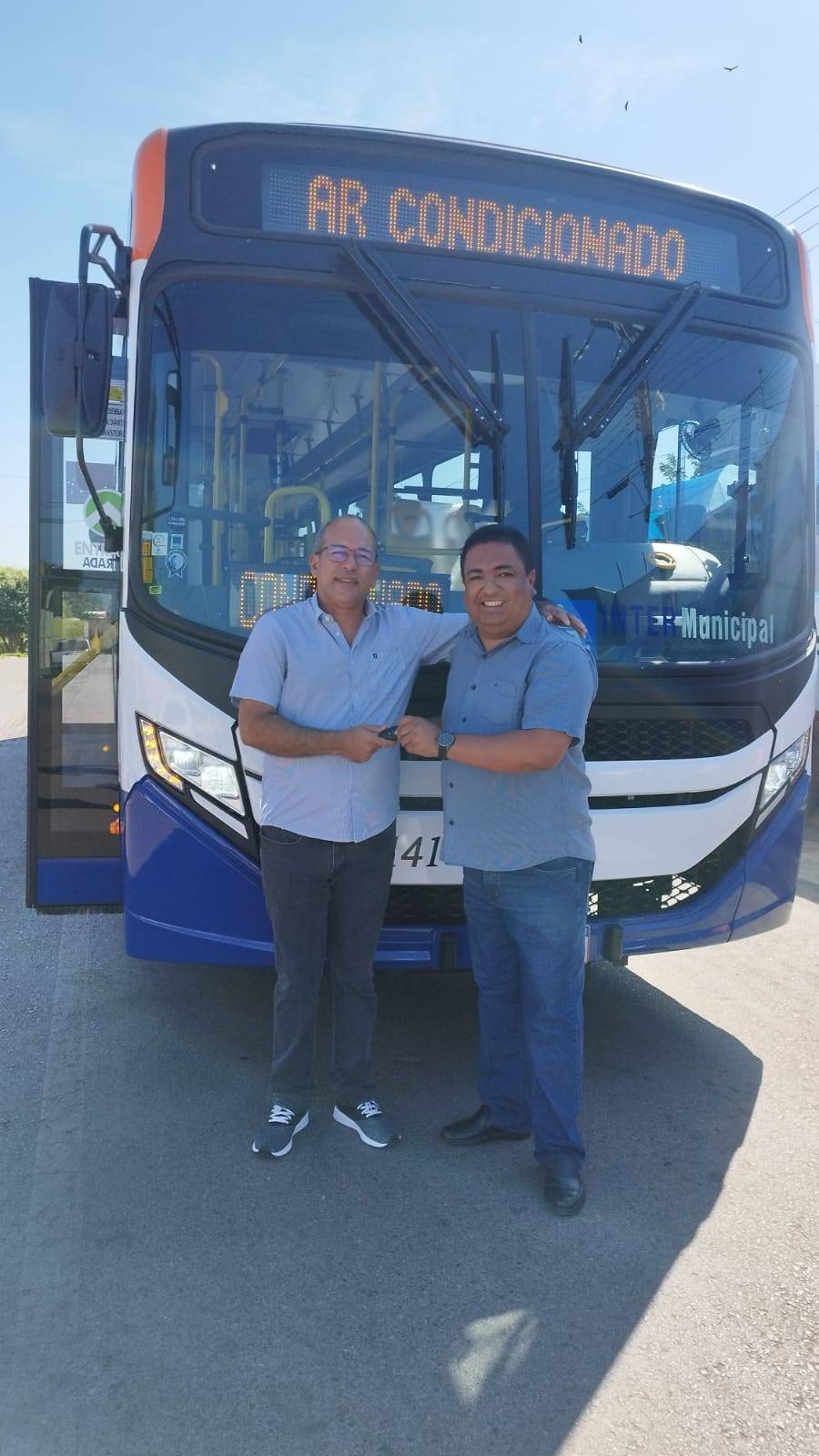 Os usuários do transporte coletivo intermunicipal de Santo Antônio de Leverger estão celebrando um avanço significativo com a entrega, na manhã desta quinta-feira (25), de um novo ônibus para a frota do Consórcio Metropolitano de Transporte (CMT). O veículo, modelo 2023/24, foi descrito pelos representantes da CMT Transportes, Ricardo Teixeira Lopes (diretor da empresa) e Josy dos Santos Cruz (gerente administrativo), como equipado com a mais recente tecnologia. Eles expressaram satisfação ao comentar sobre o compromisso da empresa em renovar e melhorar os serviços de transporte para os habitantes do município.