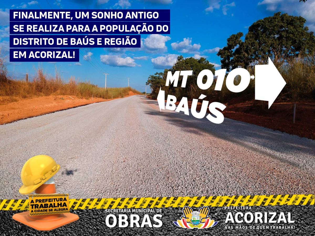 A Secretaria Municipal de Obras da prefeitura de Acorizal anunciou a tão esperada pavimentação asfáltica que irá ligar a comunidade à MT 010. Essa conquista só foi possível graças às articulações políticas e ao incansável trabalho do prefeito Diego Taques, do vice-prefeito Bira e do ex-prefeito Meraldo Sá, juntamente com toda a base de apoio na Câmara de Vereadores, sempre buscando o apoio do Governador do Estado e da Assembleia Legislativa.