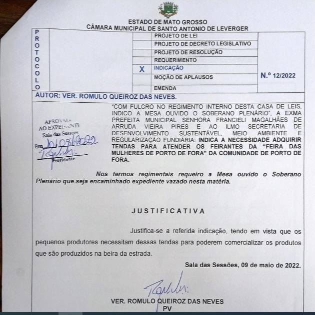 Rominho justificou sua indicação e a entrega das tendas como essenciais para as mulheres empreendedoras de Porto de Fora, pois proporcionarão mais conforto e estrutura para que possam desenvolver suas atividades de forma adequada e potencializar seus negócios na feira.
