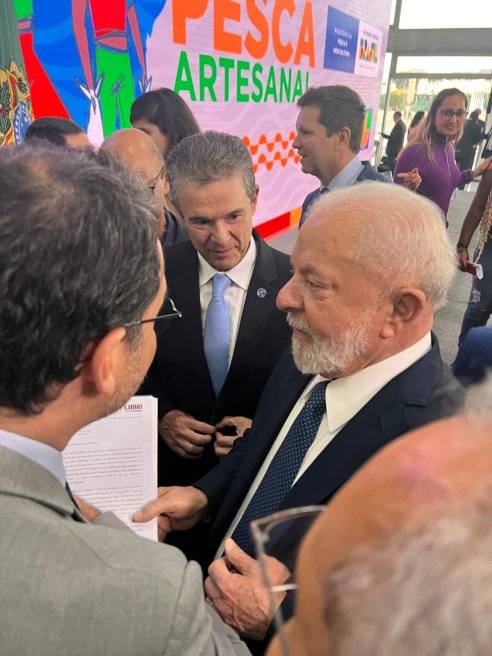 O deputado estadual Lúdio Cabral (PT), acompanhado do deputado estadual Wilson Santos (PSD), entregou ao presidente Luiz Inácio Lula da Silva (PT) uma carta denunciando a lei da Cota Zero ou Transporte Zero, que proíbe a pesca artesanal em Mato Grosso por cinco anos, afetando a subsistência de milhares de famílias.