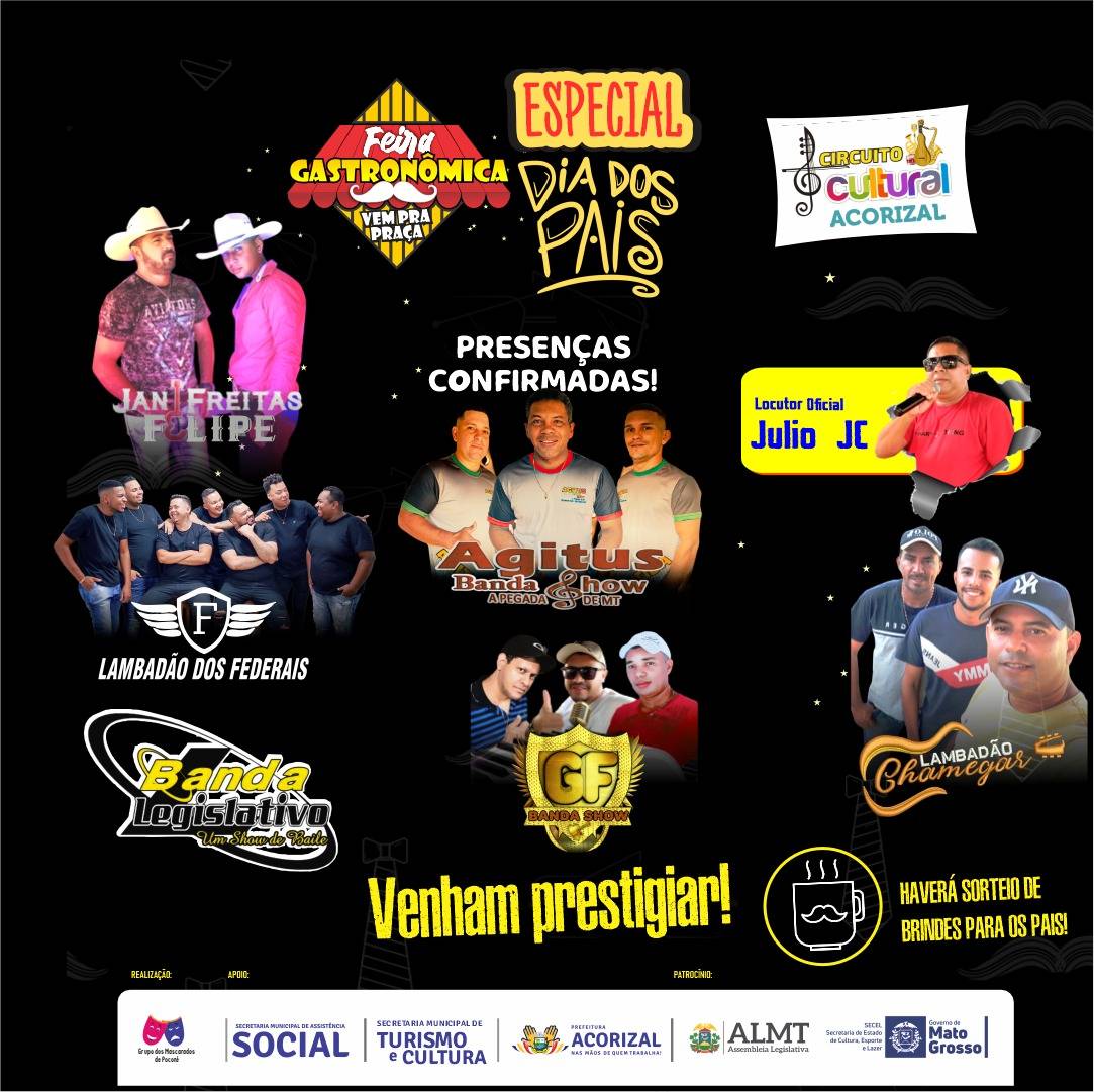 Para os que buscam uma experiência cultural enriquecedora, o sábado (12) reserva algo especial. O Circuito Cultural, um evento que celebra tradição e cultura, será promovido pelo Grupo de Mascarados de Poconé. Um patrocínio valioso da Assembleia Legislativa e do Governo de Mato Grosso assegura que esse dia será repleto de entretenimento e aprendizado. Uma homenagem calorosa aos pais de Acorizal, esse circuito promete oferecer momentos de diversão e conhecimento para todas as idades. E não termina aí.