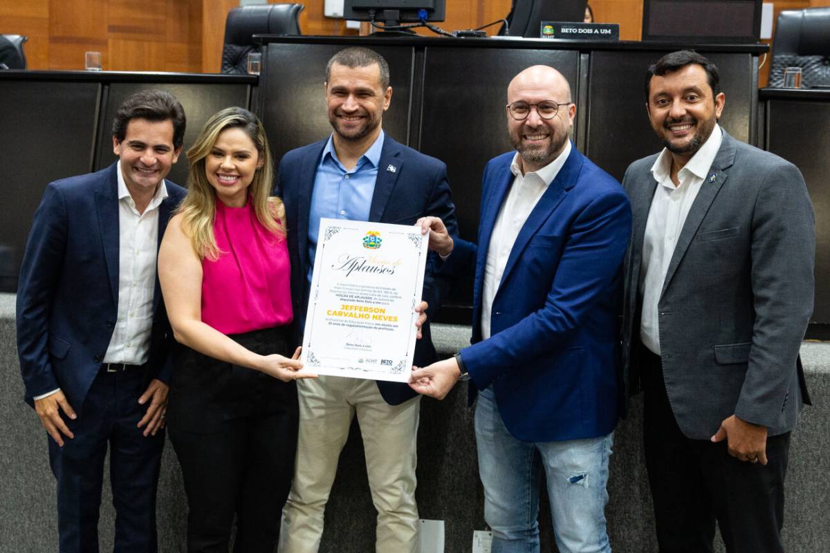 Em comemoração ao Dia do Profissional de Educação Física, celebrado em 1º de setembro, a Assembleia Legislativa de Mato Grosso (ALMT) prestou homenagem aos profissionais da área durante sessão especial realizada na noite da última segunda-feira (11). Na solenidade, requerida pelo deputado estadual Beto Dois a Um (PSB), foram entregues moções de aplausos para 57 educadores físicos, entre eles, o atual secretário de Ciência e Tecnologia do governo do estado de Mato Grosso, Professor Allan Kardec, e a ex-secretária municipal de Educação, Esporte e Lazer de Santo Antônio de Leverger, Professora Caroline Lima.