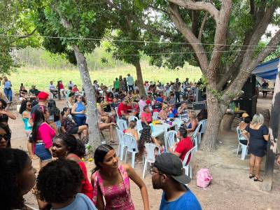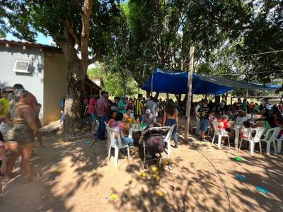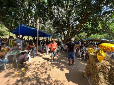 As crianças desfrutaram de uma variedade de brinquedos, garantindo sua diversão, enquanto os adultos dançaram ao som de um renomado grupo musical da Baixada Cuiabana.