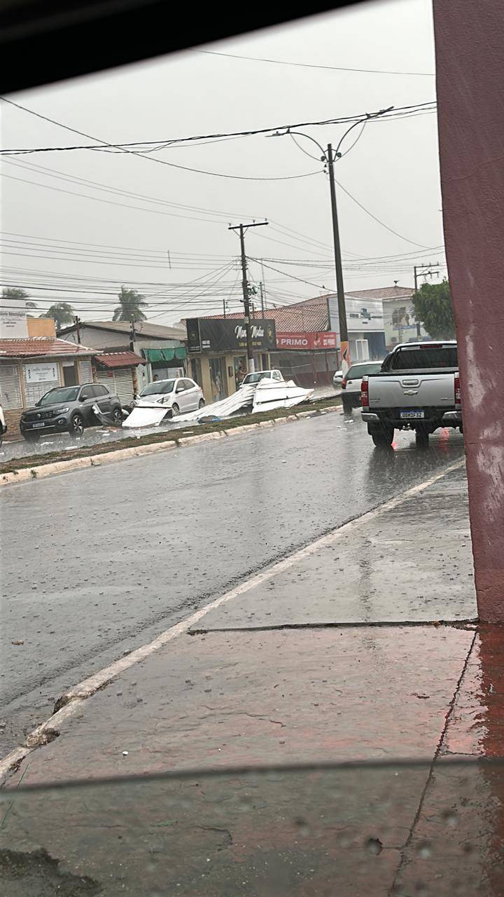 Um vendaval violento atingiu a cidade de Leverger no final da tarde da última sexta-feira (03), causando danos significativos em edifícios da administração pública municipal e na câmara municipal.