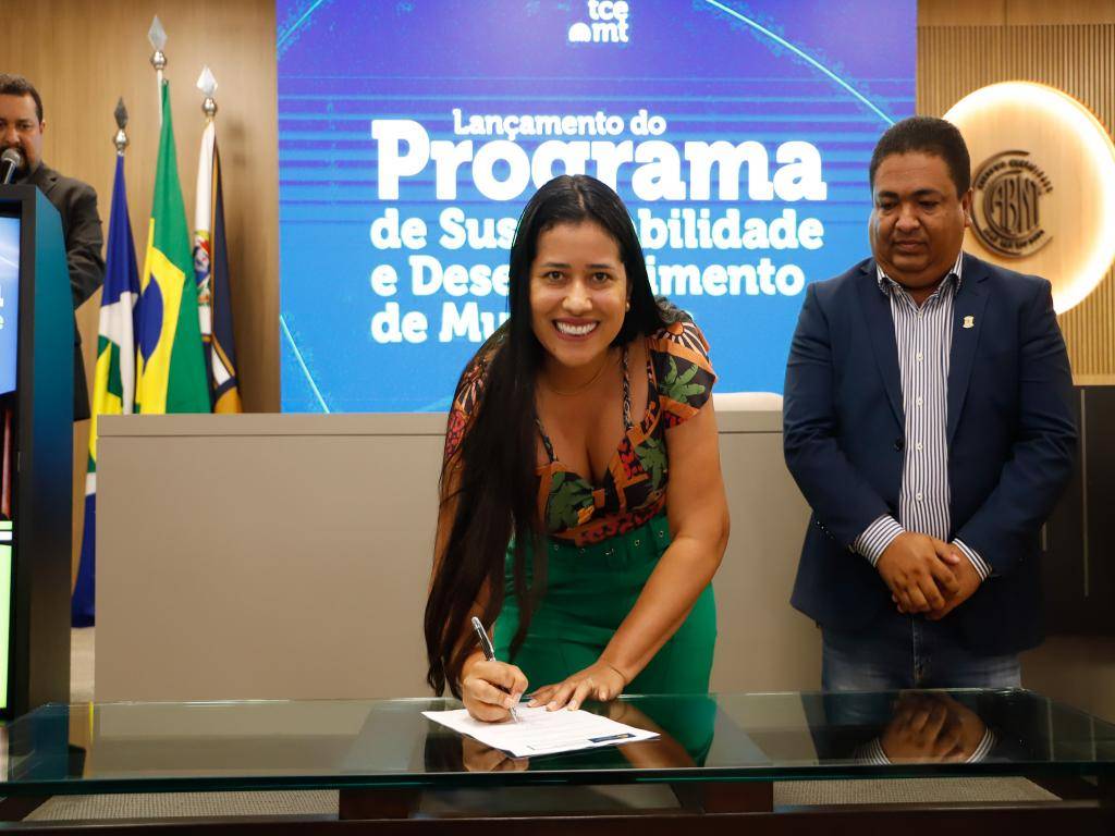 Na manhã desta quinta-feira (23), a prefeita Francieli, de Santo Antônio de Leverger, e o presidente da câmara municipal, Rômulo Queiroz (Rominho), participaram do lançamento do Programa de Sustentabilidade e Desenvolvimento de Municípios de Mato Grosso, promovido pelo Tribunal de Contas de Mato Grosso (TCE-MT). O evento ocorreu no auditório da Escola Superior de Contas.