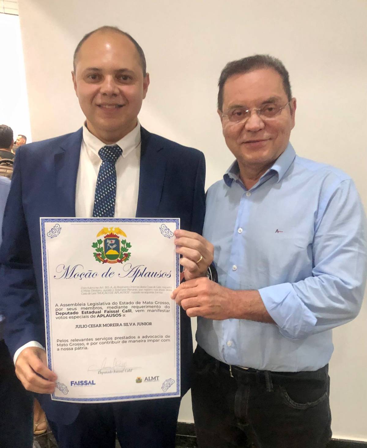 A solenidade foi solicitada pelo deputado estadual Faissal (Cidadania), que propiciou a entrega de comendas, moções de aplausos e títulos de cidadão mato-grossense a esses notáveis.