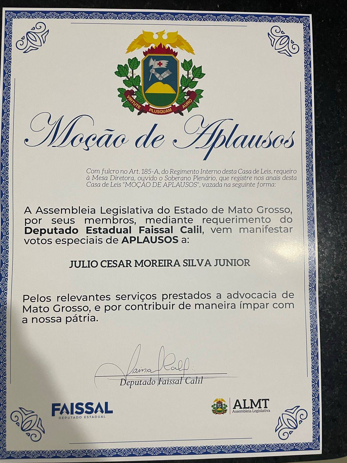Entre os homenageados, destacou-se o renomado advogado Julio Cesar Moreira Silva Junior, cuja trajetória na advocacia mato-grossense é marcada por diversas contribuições relevantes.