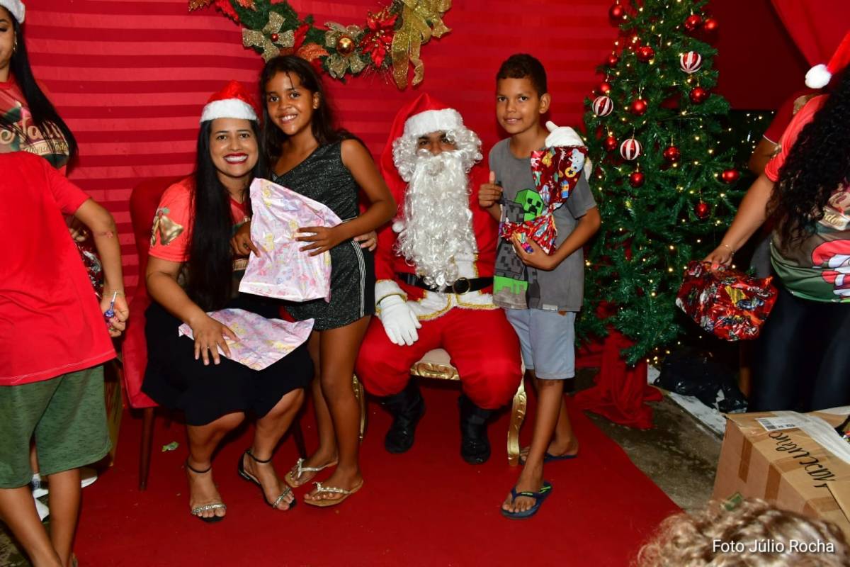 O evento teve início com a chegada do Papai Noel, que distribuiu alegria e esperança tanto para crianças quanto para adultos, reforçando os verdadeiros valores do Natal. Além da entrega de presentes, a festividade se destacou pela generosidade ao fornecer cestas básicas para famílias cadastradas no programa social Bolsa Família, visando garantir que todos, independentemente de suas condições financeiras, pudessem desfrutar dignamente das festividades natalinas.
