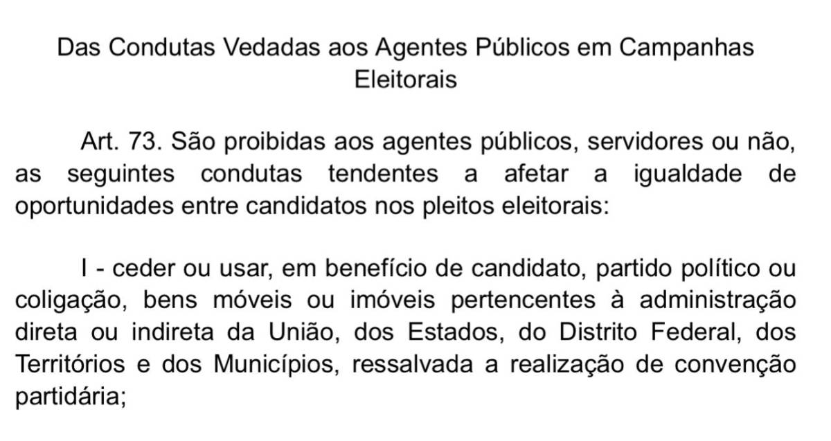 O presidente da Câmara Municipal informa também que tal orientação é com base na Lei Geral das Eleições (Lei 9.504/1997), como é determinado no artigo 73, sobre condutas vedadas aos agentes públicos (no caso ele, presidente da Câmara Municipal), em campanhas eleitorais.