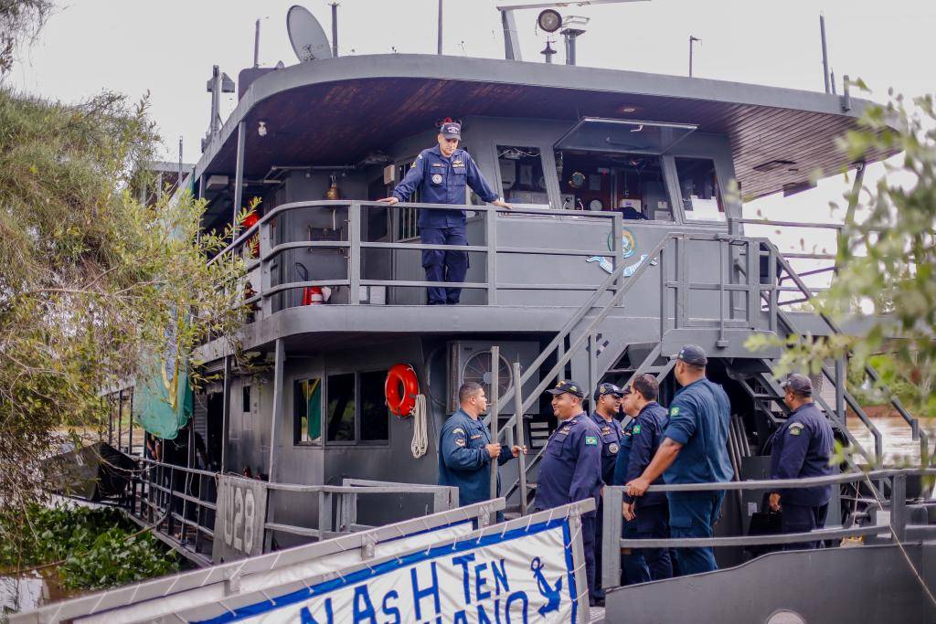 Subindo pelo rio Cuiabá, o Navio de Assistência Hospitalar da Marinha é fundamental para a iniciativa. Além de atendimentos médicos e odontológicos, os 43 oficiais a bordo também têm feito inscrições de embarcações. “A Marinha traz aos ribeirinhos possibilidade de regulamentação de arrais amadores, para que eles possam navegar com segurança”, explica o comandante da embarcação, tenente Maximiano Cobellas.
