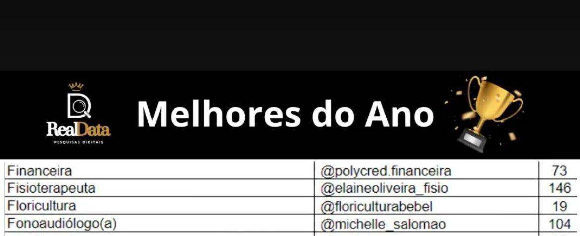 A fonoaudióloga Michelle Salomão Moreira Silva Reis foi eleita como uma das melhores profissionais de Cuiabá, segundo pesquisa realizada pela empresa Real Data. A escolha se deu através de votações populares na página do Instagram @melhoresdoanocuiaba_mt, onde Michelle recebeu um total de 104 votos.