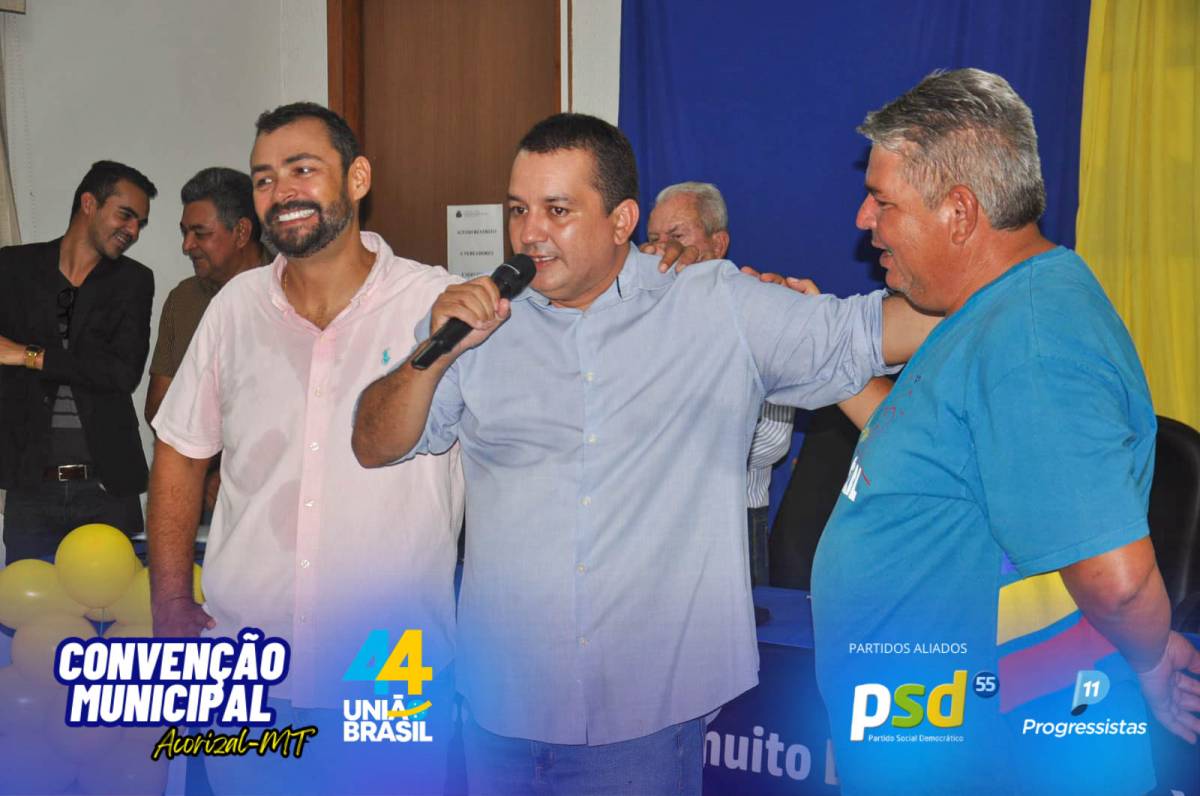 Durante a convenção, Diego Taques, pré-candidato a prefeito por Acorizal, pelo União Brasil, e Bira, pré-candidato a vice-prefeito pelo Progressistas, apresentaram seus pré-candidatos a vereadores, reafirmando o compromisso com a renovação e o progresso de Acorizal. Meraldo Sá, representante do PSD, também participou, reforçando a aliança entre as lideranças.