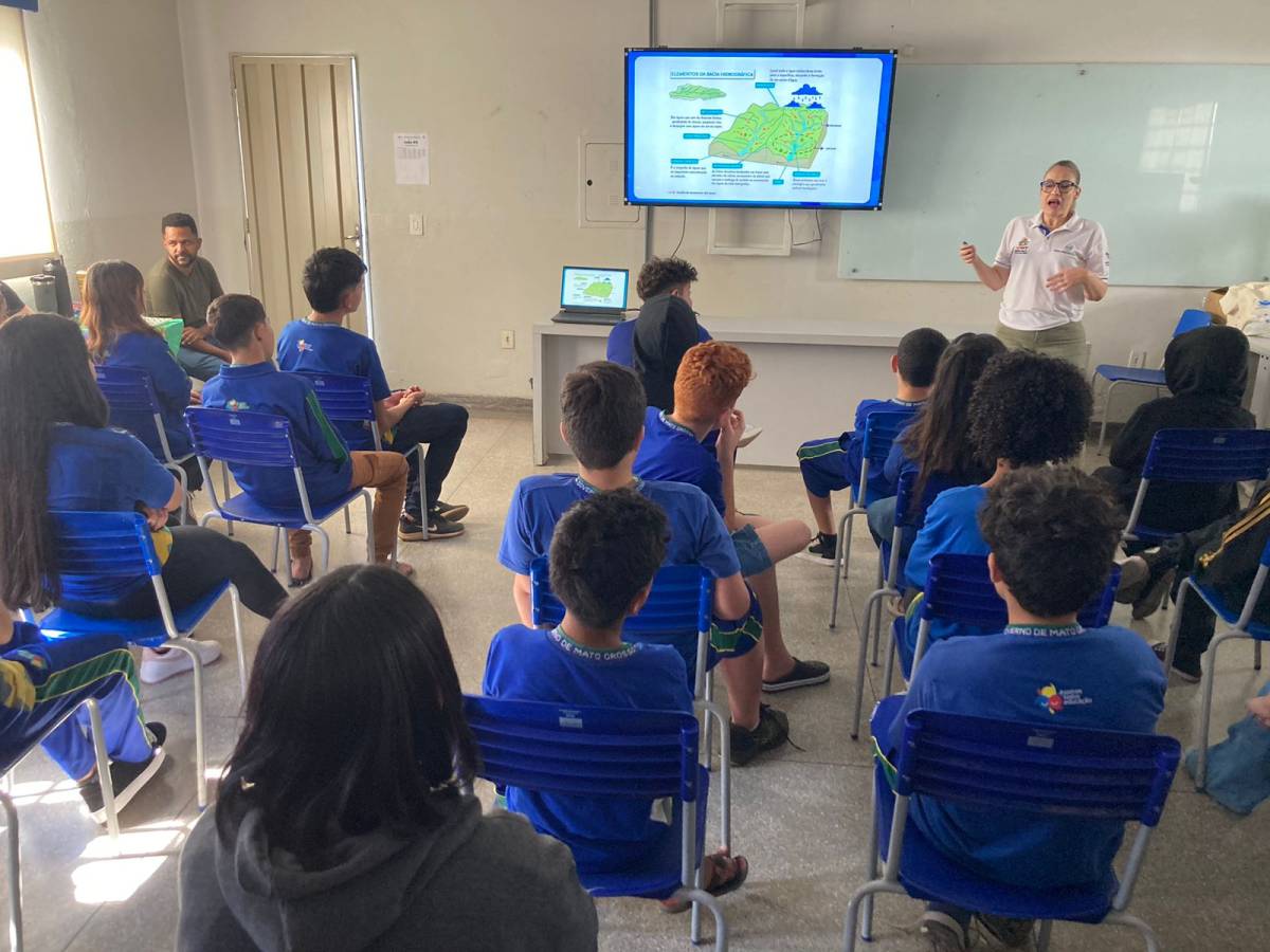 A palestra intitulada “Água em foco” é resultado da integração dos projetos "CBH nas escolas" e "Água para o futuro – interiorização” e tem como temas: escassez hídrica, saneamento, distribuição de água nos municípios, bacias hidrográficas e comitês de bacias. Especialistas das entidades envolvidas no projeto conduziram o bate papo com os estudantes de forma didática e interativa. A presidente do CBH São Lourenço, Milly Siqueira Cardinal de Almeida, conta que “a ideia de levar palestras às escolas sobre diversos temas, incluindo a preservação dos recursos hídricos, nasceu da necessidade de educar as futuras gerações sobre a importância da sustentabilidade e da conservação do meio ambiente. Ao levar informações e promover a conscientização desde cedo, busca-se formar cidadãos mais conscientes e engajados na busca por um futuro mais sustentável. Além disso, as escolas são espaços privilegiados para a disseminação de conhecimento e a formação de valores, tornando-se um ambiente ideal para abordar temas como a gestão da água”.