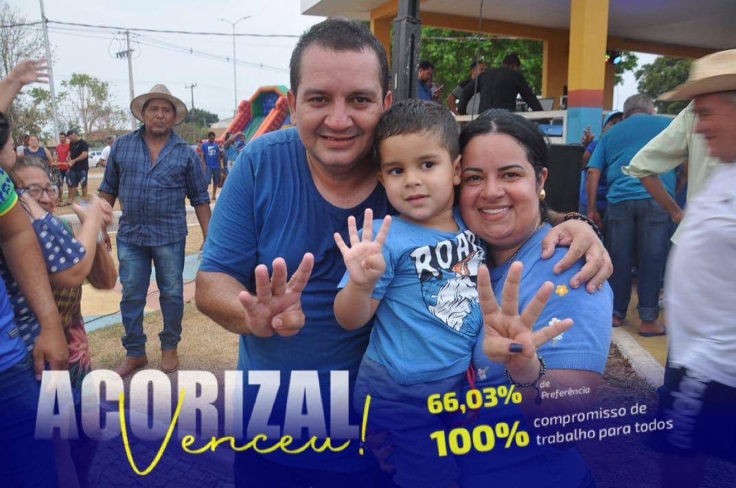 O prefeito reeleito em Acorizal, Diego Taques (União), obteve quase o dobro do que o adversário. Com 66,03% de preferência, ele teve 4.140 votos válidos, contra 33,97% ou 2.130 votos do adversário Odil Junior (PSB).