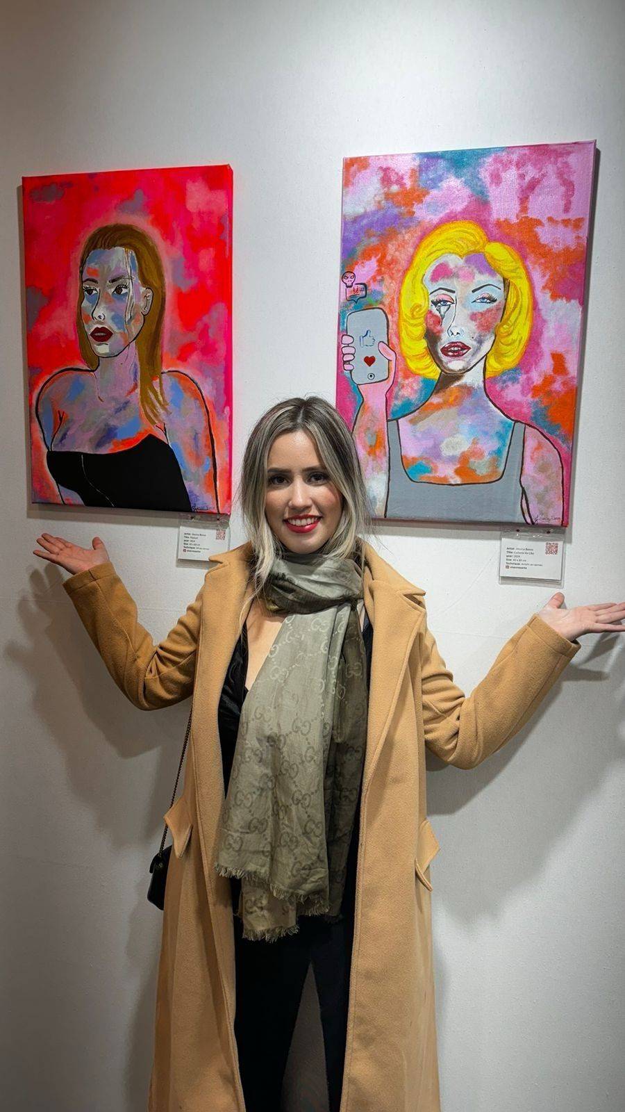 "Fiz uma crítica a esse ambiente onde as pessoas estão sempre buscando fazer essa pegada por curtidas, por like, sempre deixando de aproveitar momentos e até mesmo usando filtros e sempre voltadas para agradar. Por isso a lágrima no rosto na imagem que pintei na tela. É também uma crítica aos haters”, relatou.